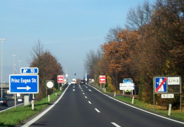 Wenn Sie von der A1 oder aus dem Süden von Linz kommen, nehmen Sie ebenfalls die A7 (Mühlkreisautobahn) und die Abfahrt heißt wieder "Prinz Eugen Straße". Hier biegen Sie links ab.