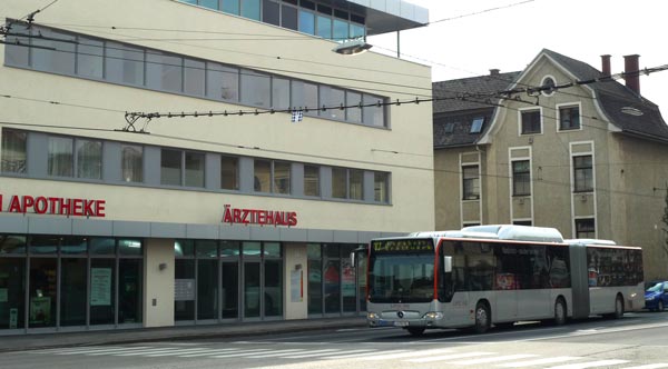 Eine Bushaltestelle der Linien 17, 19, 45 finden Sie 50 Meter vor bzw. direkt gegenüber dem Prinz-Eugen-Ärztehaus.