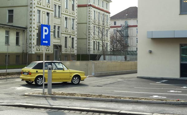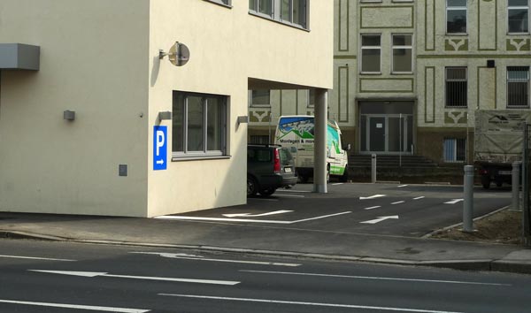Hinter dem Ärztehaus befindet sich ein reservierter Patientenparkplatz.